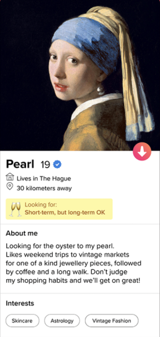 Take a screenshot of her profile page, from Tinder, Bumble, or any dating apps.